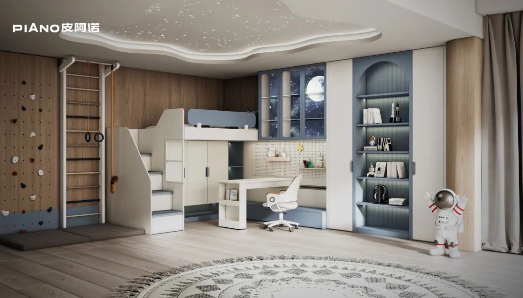 云舒系列兒童房打造森林、星空等主題,滿足孩子無限遐想,低調有序,動靜皆宜,自然與藝術融合的治愈空間。