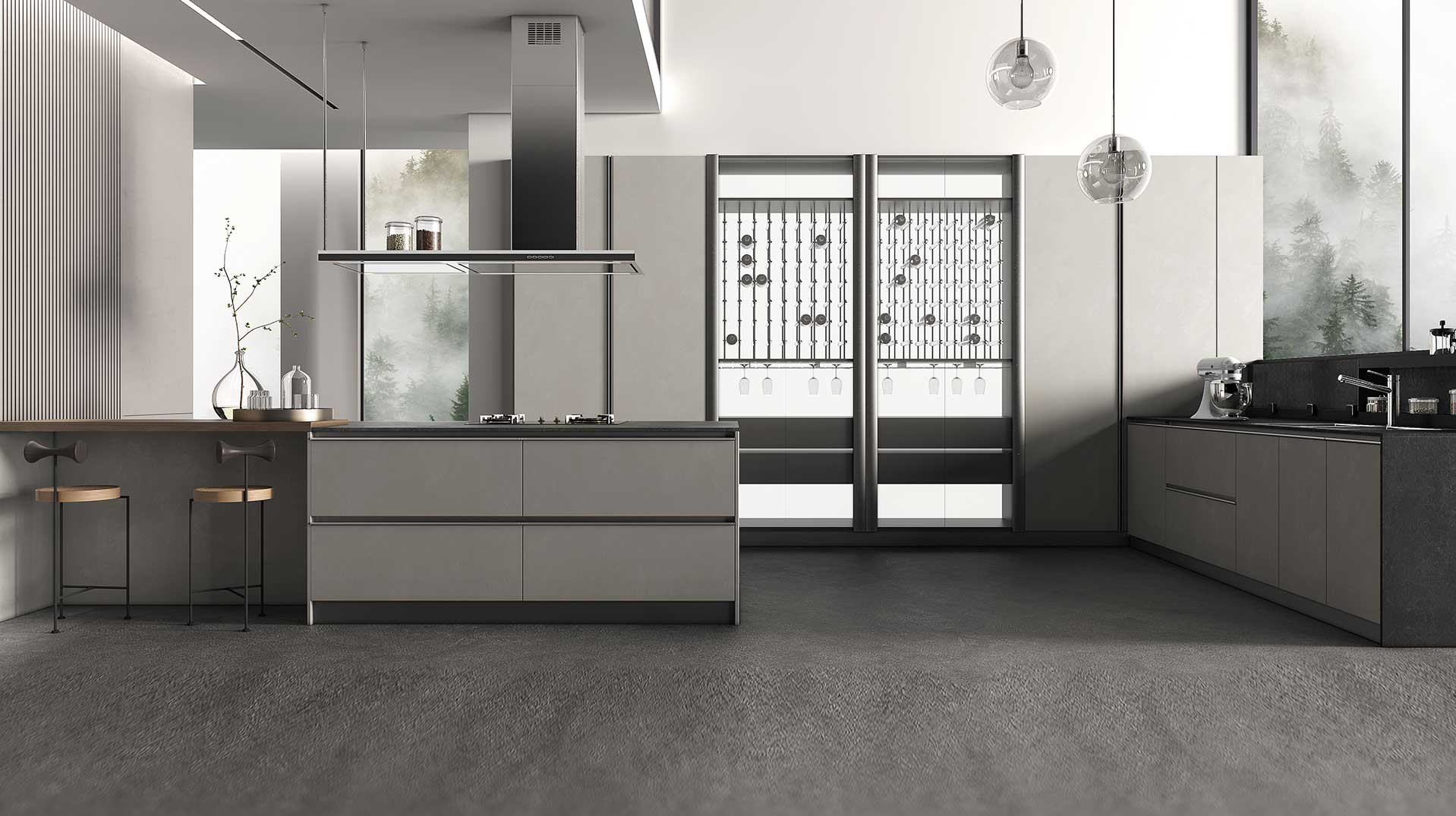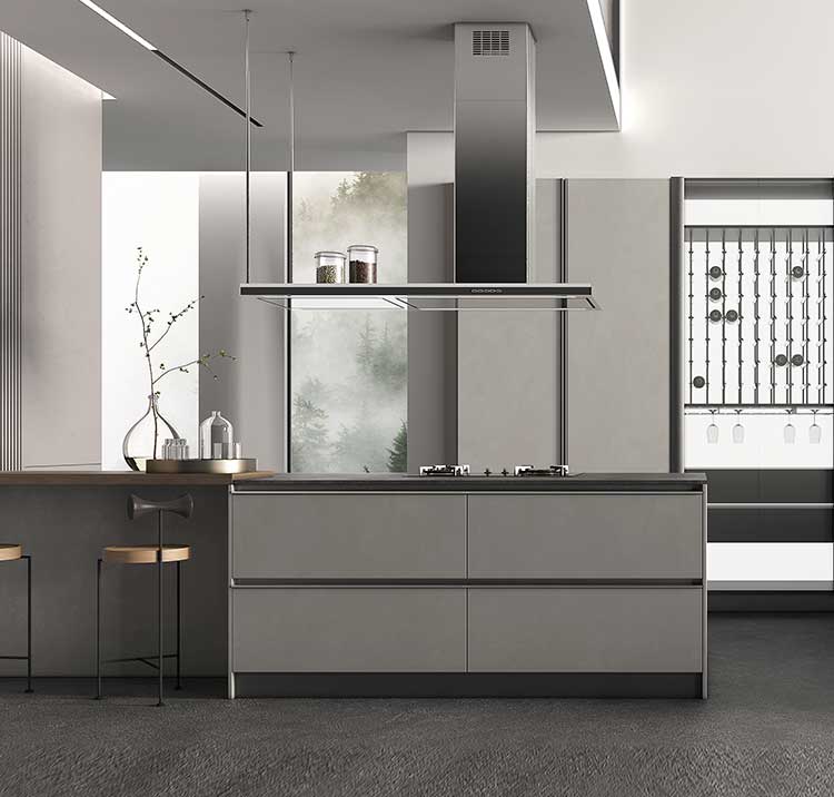 大容量的島臺柜體的設計,有效利用空間, 且整體感更強。