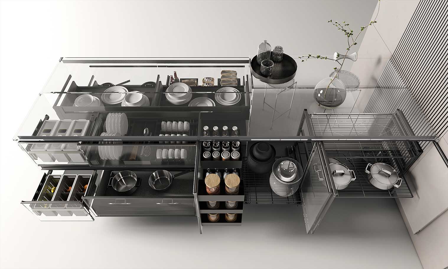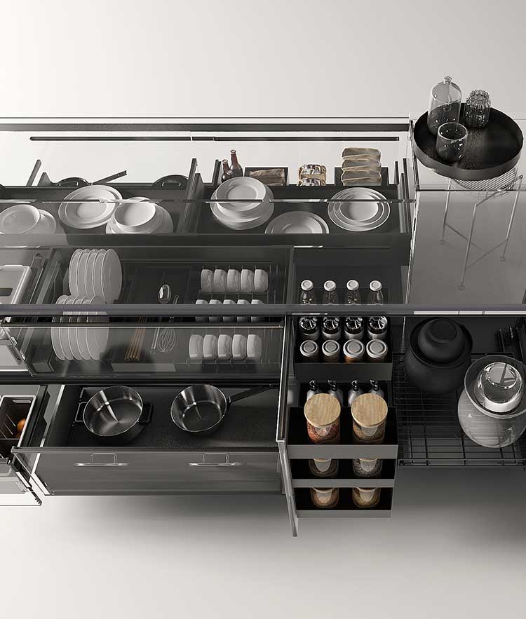 根據餐廚用具的尺寸、重量、材質、使用頻率以及操作區間進行設計,讓中式碗筷,西式刀叉,對號入座。
