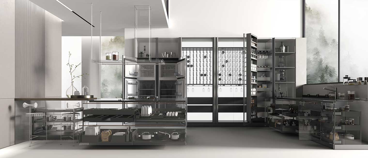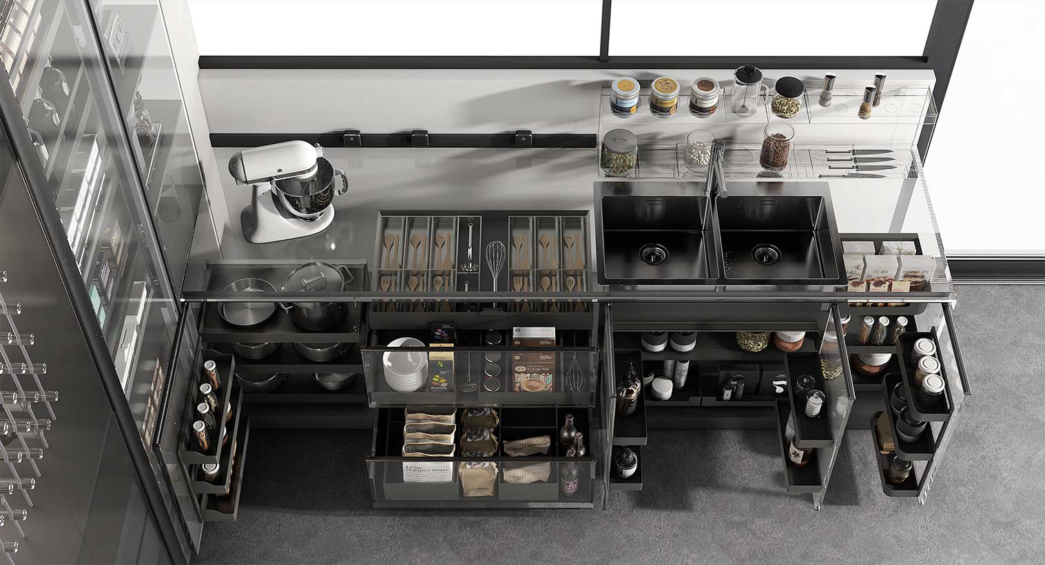 以人性化方式布局,可收納大部分日常使用鍋具,完美解決烹飪工具太多,無處安放問題,隱藏式收納,使用更美觀。