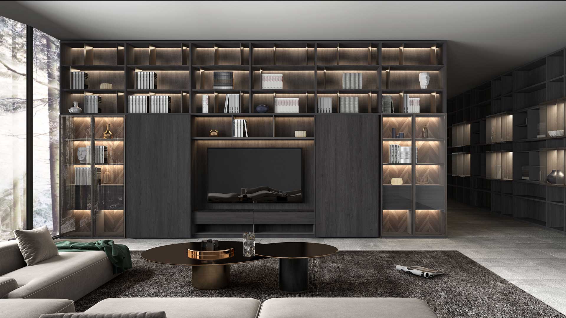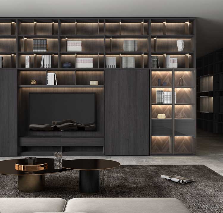 多種木皮打破重組,呈現(xiàn)四種天然木紋理,以線為隔,以色為界,虛實(shí)交錯(cuò)之間,空間敘事感油然而生。