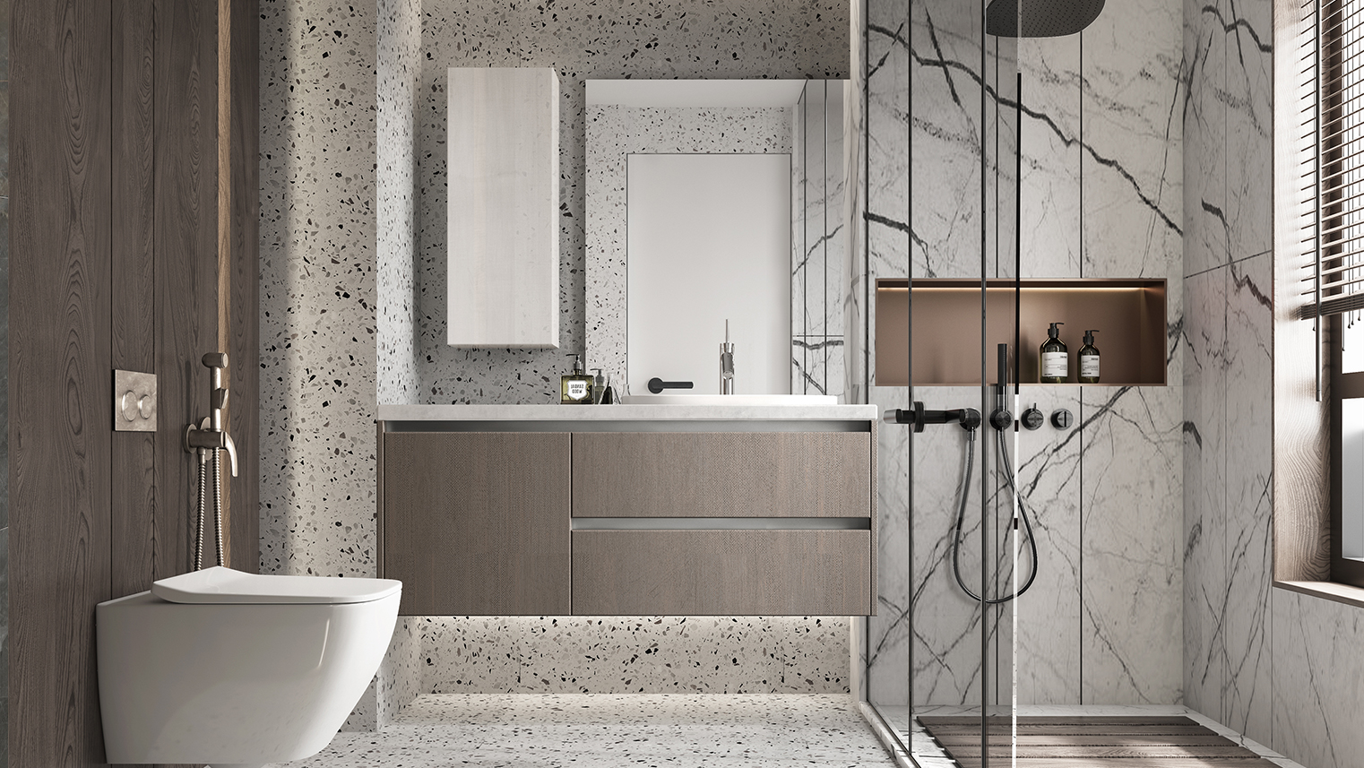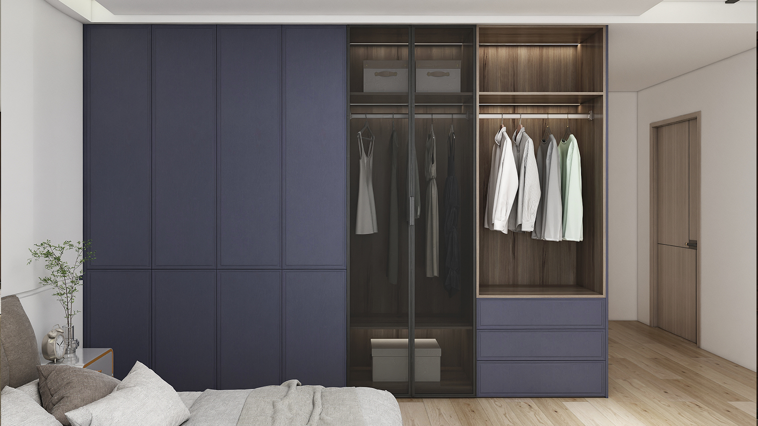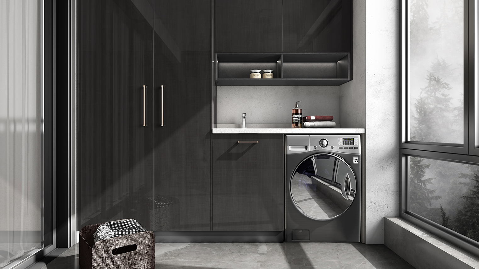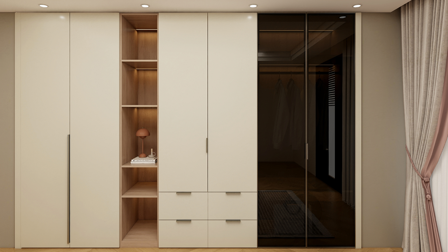 摒棄復(fù)雜的裝飾,著重空前的氛圍,在簡潔大氣的設(shè)計(jì)中增添了一份細(xì)膩與精致。高級(jí)自然的門板肌理搭配玻璃柜、開放柜設(shè)計(jì)?,F(xiàn)代輕奢的視覺美感帶入眼前,使其更富時(shí)代故事感。